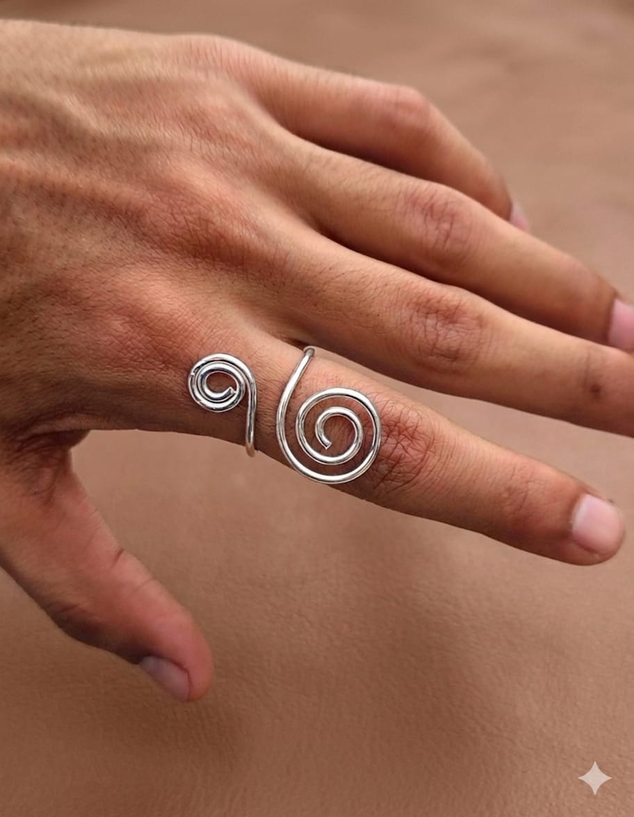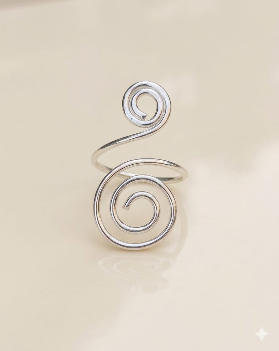 Adorn your finger with the mesmerizing beauty of our Handcrafted Sterling Silver Double Spiral Wrap Ring. A continuous, gracefully coiled strand of high-polished 925 sterling silver forms two elegant, interlocking spirals, creating an open-ended bypass design that is both modern and timeless.